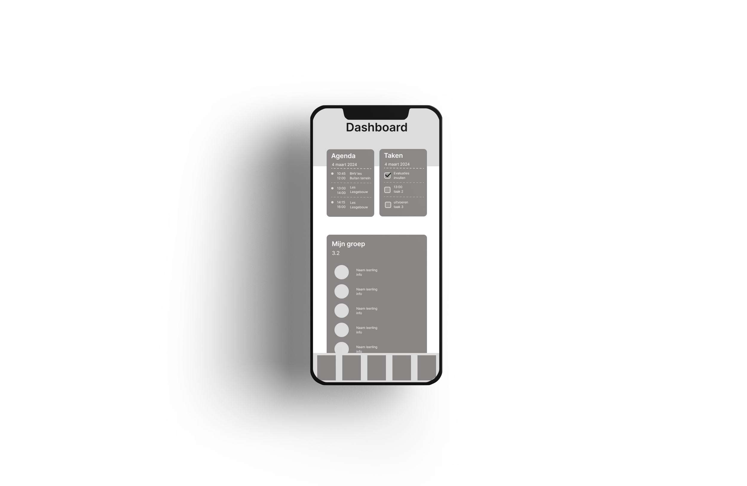 Alles natuurlijk leuk en aardig met die observaties maar er moest ook een product komen. Ondertussen was er een basis idee gevormd en ben ik met mijn bevindingen begonnen aan een eerste concept. Na wat feedback van ervaren designers heb ik een lofi ontwerp gemaakt dat ik kon testen bij mijn doelgroep. En na nog wat kleine tweeks aan het ontwerp uiteindelijk een mooi hifi productontwerp opgeleverd. Hiermee moeten de docenten gemakkelijker informatie kunnen opzoeken en toevoegen bij lessen op locaties buiten de lokalen.